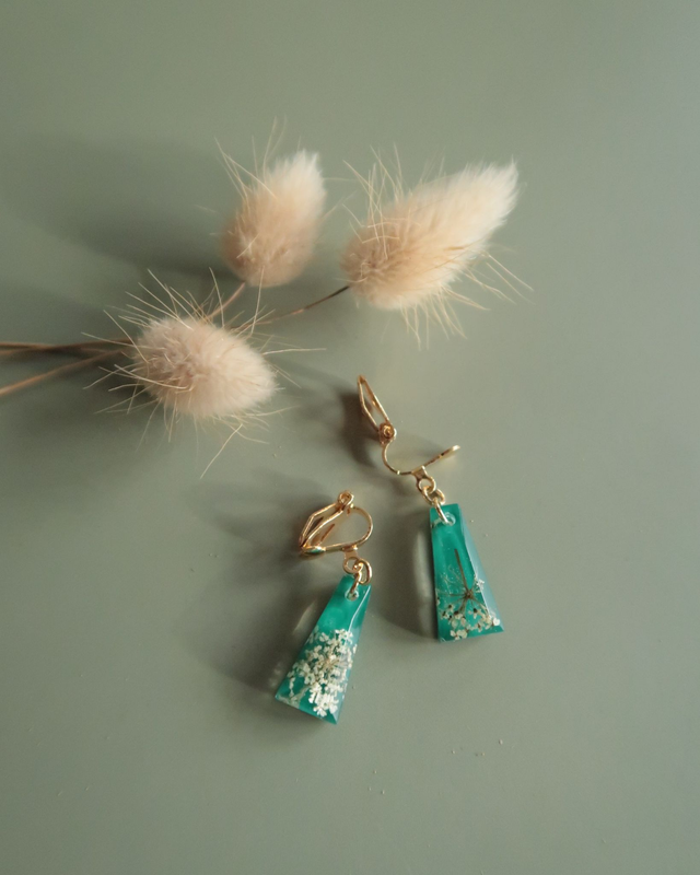 La finesse des fleurs de carottes, l'intensité du vert émeraude et l'élégance du doré pour sublimer vos oreilles🌿✨