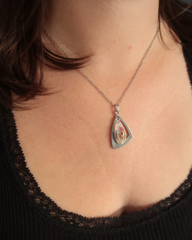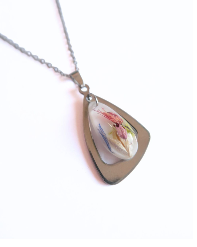 Le charme des petites fleurs allié à l'élégance de l'acier inoxydable dans un collier qui referme un mini jardin à explorer 🌼🌸
