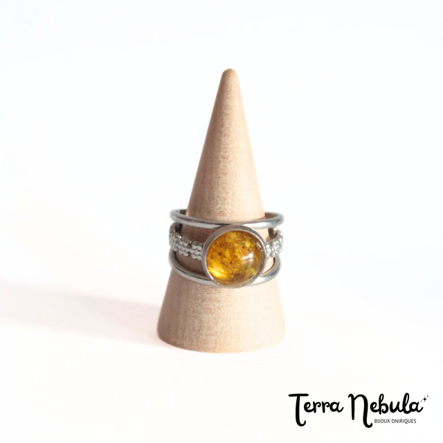 Osez briller avec cette bague rappelant la couleur de l'ambre, qui se mariera facilement avec toutes vos tenues💍